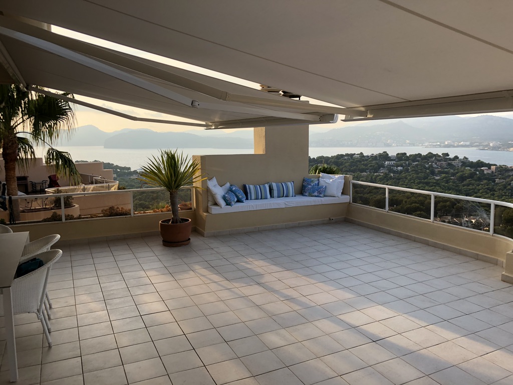 Dieses aufwendig und mit viel Liebe zum Detail ausgestattete Apartment (97 qm Wohnfläche, große Terrasse ca. 67 qm, Patio 16 qm) lässt keine Wünsche offen. Sie können sofort einziehen . Viel Platz, helle, große Räume, moderne Einbauküche, ein exklusiver Mikrozementboden, 2 top ausgestattete Bäder sowie einer der atemberaubendsten Blicke auf Mallorca überhaupt erwarten Sie. Dazu ein Gaskamin, komplette Möblierung, Einbauküche, Miele-Waschmaschine, Terrassenmöbel und hochwertige Matratzen. Modernste Klima/Wärmegeräte sind ebenfalls vorhanden.